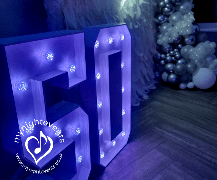 our LED numbers, priced at an average of £40 per letter, including complete setup for your convenience. Perfect for highlighting special milestones, anniversaries, or adding a unique countdown to your event, our LED numbers are designed to capture attention and create lasting impressions. Choose our LED numbers to bring a radiant glow to your event, making every moment not just seen, but truly memorable.